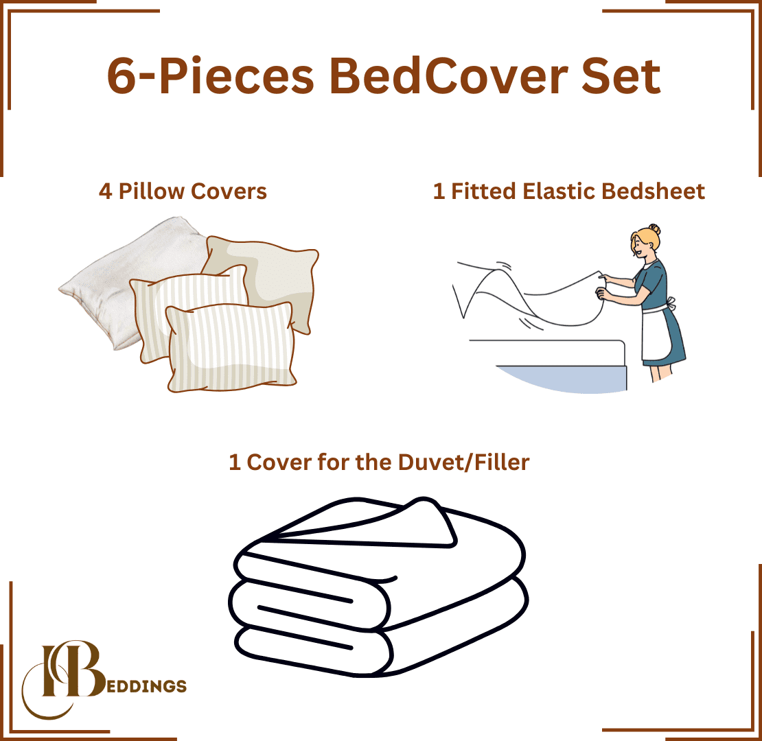 Elevate your bedroom with our premium 6-piece bedcover set, crafted from 100% pure cotton for unparalleled comfort and durability.